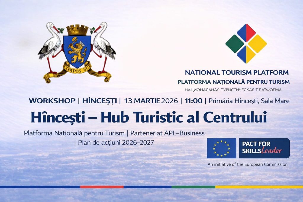 Platforma Națională pentru Turism, în parteneriat cu Primăria municipiului Hîncești, invită actorii publici și privați la workshop-ul dedicat prezentării Platformei și consolidării parteneriatului APL–Business pentru dezvoltarea destinației.